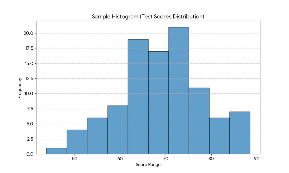 目的: データのちらばり具合(分布)を読み解くために使う、非常に強力なグラフです。データがどの範囲にどれだけの頻度で集中しているのかを把握し、「全体の傾向」や「集団の特性」を見抜きます。(例:テストの点数分布、身長の分布など)