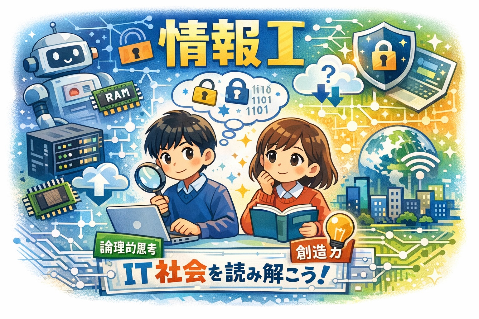文京区や新宿区でプログラミング教室を運営している当教室では、単に正解を導き出すだけでなく、その技術がなぜ現代社会に必要なのか、という「情報の意義」を深掘りして解説しています。今回は、2026年度共通テストの情報Ⅰ、第1問の問1で出題された記憶装置とセキュリティの2つの問題から、「コンピュータがどのような思想で設計されているのか」、そして「情報という形のない資産をどう守るべきか」というITリテラシーの本質に迫ります。そして、これからの時代を生きる子どもたちにとって、なぜ「論理的思考力」と「創造力」が欠かせない武器になるのかを、一緒に考えていきましょう。