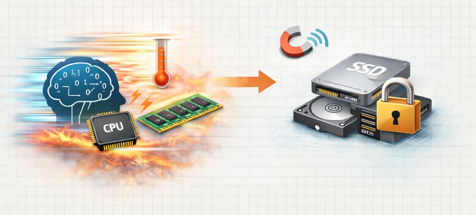 教科書的な答えは、「主記憶装置(メモリ)は速いが一時的、補助記憶装置(SSD等)は遅いが大容量で永続的」というものです。しかし、ここには技術者が何十年も格闘してきた「トレードオフ」の物語があります。